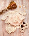 This sweetest Romper is made with a soft stretchy fabric in light pink. The ruffle tulle on this Romper gives it the perfect girly look, the back is open. You can add Bonnet